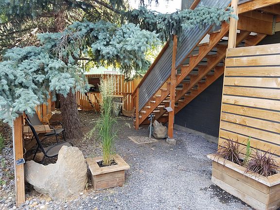 In Town Living at it's Best. Built with Green in mind. The main house is 1285 sqft 3 bed 2 bath and built using staggered stud exterior wall construction providing ample insulation keeping this home warm in the Winters and cool in the Summers. This super cute home has a modern feel with wood grain vinyl floors, hard surface countertops, and stainless steel appliances. The 520 sqft. 1 bed 1 bath, ADU above the detached garage, is a perfect place for a home office/studio, or to be used as a short term rental. Paver patio between main house and garage is a great place for outside dinning and relaxing. Mature trees and other vegetation provide privacy and shade and a few other great places to relax. This property has been grandfather in with the cities short term rental permit and allows for income potential.