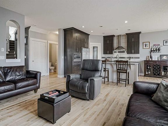 5 Bedroom upstairs! Welcome to 358 River Heights Drive in Scenic Neighbourhood in Cochrane! Tucked into the heart of Cochrane’s sought-after River Song community, this stunning two-storey home offers space, style and a true sense of connection to both nature and community. With five spacious bedrooms above grade and nearly 2,000 square feet of living space, this is the kind of home where memories are made and families thrive. From the moment you walk in, you’ll be drawn to the welcoming atmosphere created by the open-concept main floor, enhanced by designer tones and premium finishes. The kitchen is the centrepiece of the home, beautifully outfitted with two-tone cabinetry, granite countertops, upgraded tile backsplash, stainless steel appliances and a walk-through pantry. Whether you’re hosting holiday dinners or casual weekend brunches, the dining area provides ample room for gatherings. The living room is bathed in natural light thanks to large windows, and features a sleek modern fireplace that creates a cozy yet elegant vibe. A main-floor mudroom with custom lockers and laundry area provides function without sacrificing style, ideal for busy households. Upstairs is where this home truly shines. Rarely will you find five bedrooms on the upper level, offering endless options for large families, home offices, guest rooms or hobby spaces. The primary suite is your personal retreat, complete with vaulted ceilings, a spa-inspired ensuite featuring a soaker tub and large glass shower, and generous walk-in closet space. The backyard is landscaped, fully fenced and ready for both play and relaxation. Whether you're enjoying a sunny BBQ or an evening under the stars, there’s room to make the outdoor space your own. River Song is more than a neighbourhood, it’s a lifestyle. Nestled along the Bow River, residents enjoy breathtaking views, serene walking paths and easy access to Cochrane’s charming downtown. River Heights Drive places you within walking distance of schools, playgrounds and the natural ravine, while still offering an effortless commute into Calgary. Cochrane itself blends small-town friendliness with modern convenience, and is consistently ranked among Alberta’s best places to live. Whether you're a growing family or looking for more space in a connected community, this home offers the perfect combination of functionality, comfort and location.
