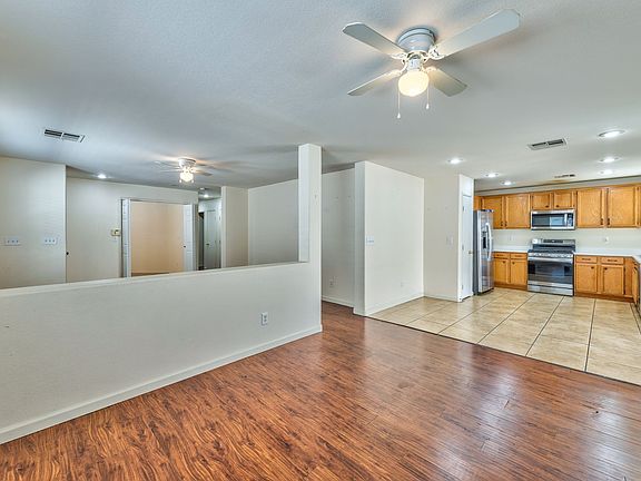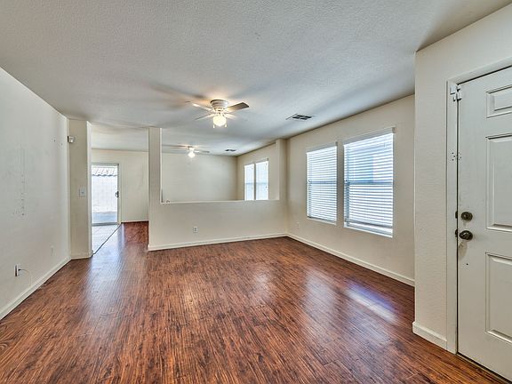 Charming single-story home located in the desirable heart of Silverado Ranch! This beautifully maintained property features a freshly painted interior with upgraded baseboards in the main living areas, giving it a clean and modern feel. Enjoy 2" blinds throughout for privacy and style. The spacious primary bedroom offers a walk-in closet, ceiling fan, and an ensuite bathroom with both a tub and shower. The open-concept kitchen boasts ample counter space, plenty of cabinets, a double sink, garbage disposal, dishwasher, and refrigeratorperfect for everyday living and entertaining. Flooring includes warm hardwood in the main areas, durable tile in the kitchen and bathrooms, and plush carpet in the bedrooms. A sliding glass door off the kitchen leads to a covered patio and a fully paved backyardideal for outdoor dining or relaxing evenings. Situated in a quiet, friendly neighborhood just minutes from shopping, restaurants, and more. This one won't lastschedule a showing today!