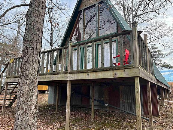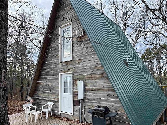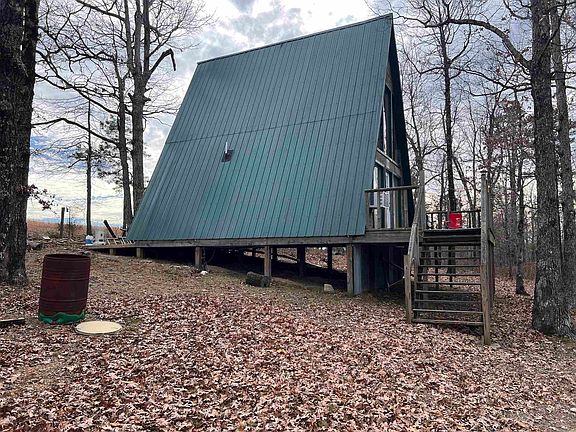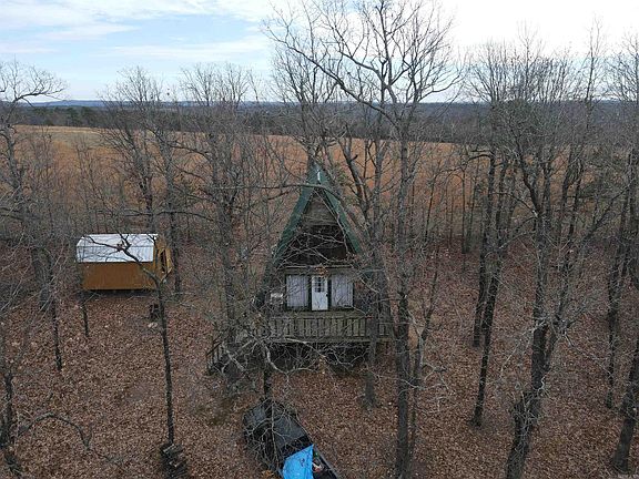 A charming rural retreat in the Oxley community outside of Leslie, Arkansas. It consists of 3.21 surveyed acres, offering a spacious and private environment in a rustic setting. The main structure on the property is a cozy A-Frame cabin, which measures 768 square feet. This cabin exudes a rustic charm and provides a comfortable and quaint living space. It also features a front deck and a back porch, allowing residents to enjoy the serene natural surroundings and take in the beautiful mountain views. These outdoor spaces are ideal for relaxation, entertaining, or simply soaking in the peaceful atmosphere. In addition to the cabin, the property includes a 10 by 16 storage shed, providing ample space for storing outdoor equipment, tools, or other belongings. It's equipped with essential utilities, including a well for water and a 1000-gallon septic system for waste disposal, ensuring a self-contained and comfortable living environment. Inside the cabin, you'll find a kitchen, 1 bedroom and 1 bathroom, providing the basics for comfortable living. Additionally, there is a loft area that has the potential to be converted into a second bedroom by simply adding a closet.