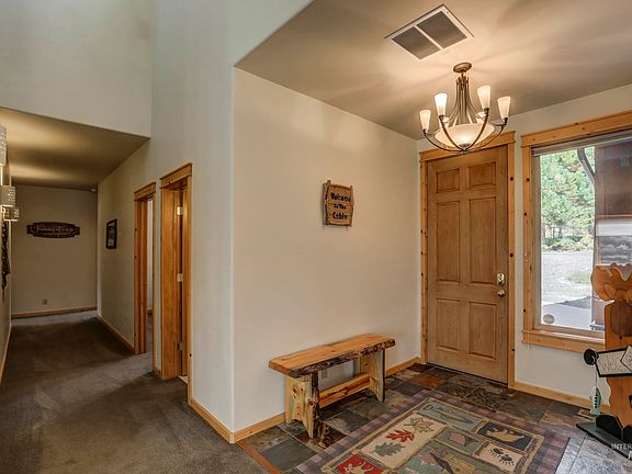 You'll feel at home as soon as you enter this turnkey, quintessential, quality built McCall cabin. Just minutes to the lake and Shore lodge, but surrounded by trees for privacy. The open concept design of this captivating 3-bedroom, 2.5-bathroom radiates natural light, cathedral ceilings, and plenty of room to gather family and friends. The roomy kitchen is a concoction of inspiring counter space and major appliances. The ensuite primary bedroom, conveniently located on the main-floor, is well-designed and spacious. In addition to the convenience of the private bathroom with jacuzzi tub, you will find plenty of walk-in closet space and private access to the back paver patio. The other 2 expansive bedrooms also offer the convenience of ground floor accessibility and share a bath. The washer and dryer are conveniently located with access to the garage and outdoor side patio. The 2 attached 2 car garage is extra deep to allow parking for trailers. The .42 acre lot has plenty of room for parking of your toys!