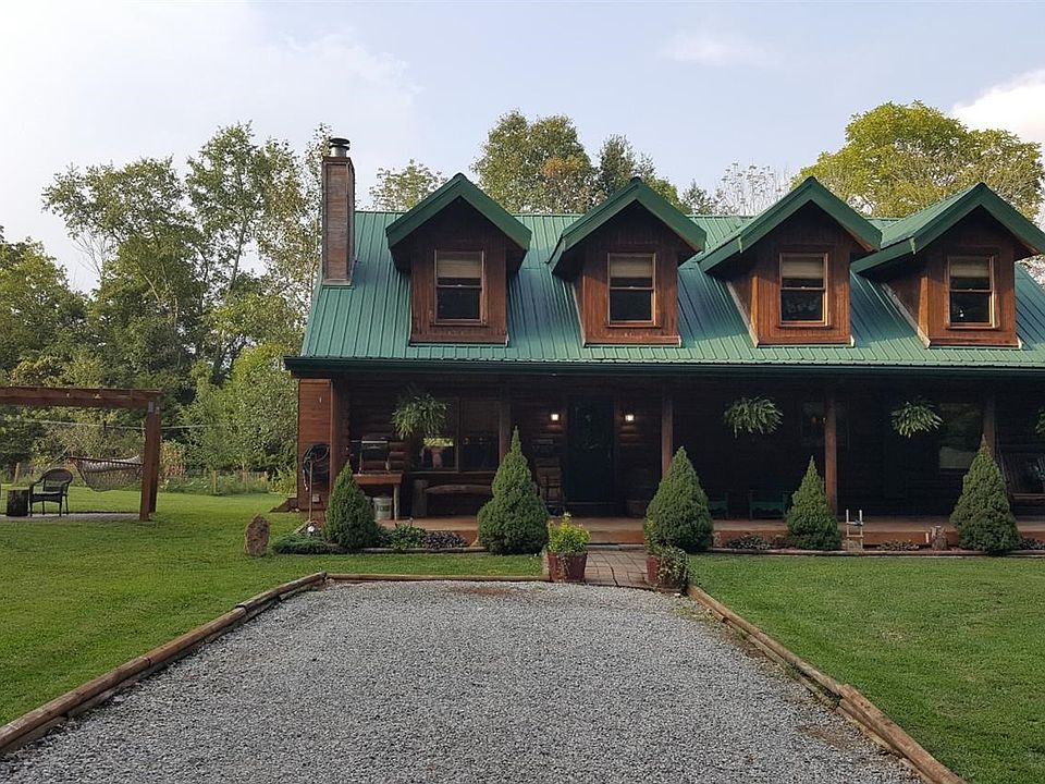 BEAUTIFUL LOG CABIN ON 8.44 CRES!UPDATED INSIDE AND OUT, STONE FIREPLACE, OPEN FLOOR PLAN! KITCHEN ISLAND, WLAK OUT TO HUGE DECK TO VIEW THE WOODS, AND DEER!WOOD FLOORS THRU-OUT,METAL ROOF, BEAMED CEILINGS! HUGE BARN AND FIRE PIT WITH PERGOLA!