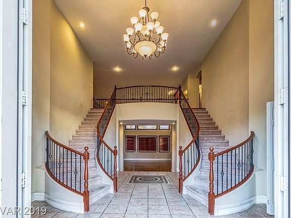 Gorgeous 5 bedroom home with oasis backyard, complete with pool, spa, built in BBQ, gazebo, and basketball court! Beautiful flooring throughout home with granite counter-tops in the kitchen. Master suite features it's own fireplace, sitting area, walk in closet and adjoined master bath. Downstairs bedroom can be second master with attached full bath. Close to I-15, shopping, and South Point casino. Pool service and landscaping included in rent.