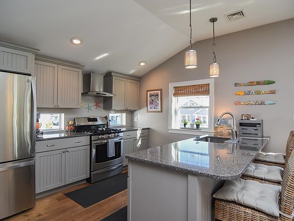 Welcome to your dream coastal retreat in Seabrook, NH! Just a stroll away from the beach, this exceptional 2-family home offers the perfect blend of luxury, comfort, & convenience. The first-floor unit boasts 3 bedrooms, 1 full & a 3/4 bath. Step into the gourmet kitchen, where a stunning quartz breakfast island awaits w/seating for three, illuminated by chic pendant lighting. Prepare culinary delights w/ease amidst sleek Medallion cabinetry & SS appliances, all complemented by the warmth of manuf. wood flooring. Vaulted ceilings in the kitchen & living room create an airy ambiance, while a natural gas fireplace adds cozy charm. Retreat to the primary bedroom with its tray ceiling, walk-in closets, & luxurious ensuite bath. Additional highlights incl. central AC, a spacious 8 x 25 Trex deck, washer/dryer, space saving Murphy bed & generator. The lower unit offers its own allure w/2 beds, 3/4 bath, mini split, stackable washer/dryer, LR featuring built-in bookcase & electric fireplace, gourmet kitchen w/granite counters, center island & SS appliances. Relax in the all season sunroom or private patio. Enjoy the low-maintenance backyard oasis, complete w/stone pavers perfect for al fresco dining, an outdoor shower for post-beach relaxation, & a heated storage room. Green features incl. energy-efficient windows & a high-efficiency heat/hot water system. Located in walking distance to several area restaurants. Don't miss this rare opportunity to own a piece of coastal paradise!