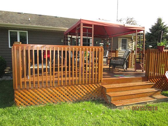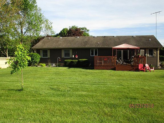 Nice Country Ranch on tastefully landscaped lot. 3br2bath with extra living space in basement with plenty of storage space. Nice eatin Country Kitchen with eatin bar. 2 car garage with extra storage room. 7x22 covered country porch on front and large 16x18 wood deck on back off patio doors. 12x12 storage shed with storage above. Extra well for gardening,pool,ect. Close to school, shopping, minutes from highways. Move in for the Holidays!!