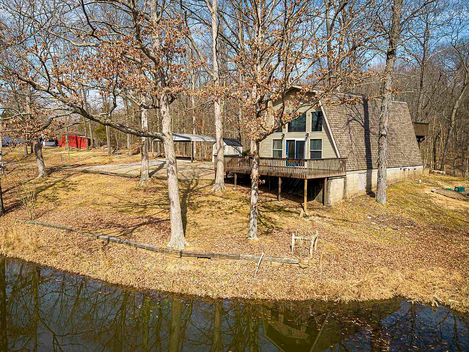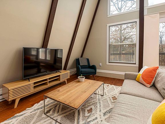 Tucked in the woods, you’ll find this spacious and updated A-Frame style home set on 1.2 acres with a private pond. Step inside, and you will immediately be taken by the double-height great room with abundant natural light. A completely renovated kitchen features new white shaker-style cabinetry, black granite countertops, custom tile backsplash, and stainless-steel appliances. Upstairs you’ll find a generously sized primary bedroom suite with a freestanding tub, large walk-in closet, and a private deck with forest views. Bonus loft space overlooking the great room below. New flooring throughout and updated baseboard heat. New aerator septic system installed in fall of 2022. Enjoy pond views while relaxing on the expansive front deck. Great location close to state parks, hiking trails and Marion Square. This is a truly unique home in a spectacular setting.