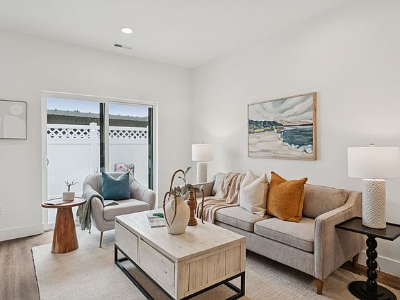 Modern single-level condoQuiet fenced patioBeautiful white quartz countertopsBright open floor planSliding glass doors