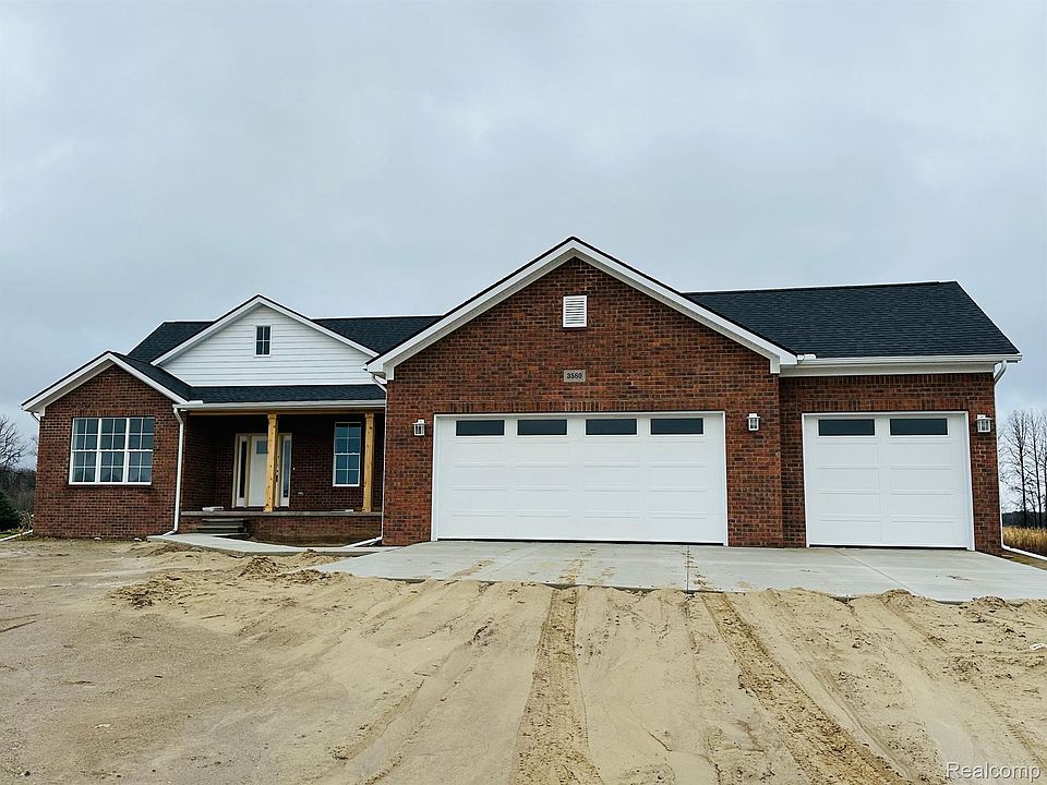 IMMEDIATE OCCUPANCY Almont New Construction! A beautiful 1900 sq ft, 3 bedroom, 2.5 bath split ranch on approximately 2.5 acres just minutes from both Imlay City and Almont. Spacious, open concept plan features cathedral ceiling in main living area, large island, pantry and custom tile backsplash in the kitchen, tray ceiling in primary bedroom, double vanity and custom tile work in primary bath, quartz countertops throughout, central A/C, a 3 car attached garage and full daylight basement. Schedule your tour today! Listing agent has interest in property.