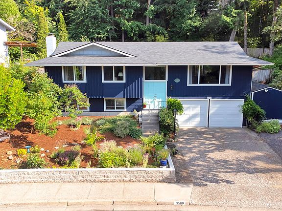 Tastefully Updated | Move-In Ready | Lush Outdoor Oasis. Nestled in desirable South Eugene hills, this beautifully updated 4-bedroom, 3-bath home is located on a terraced exceptionally landscaped 0.18-acre lot. This light-filled 1,889 sq. ft. property has been thoughtfully renovated inside and out, offering modern convenience and serene outdoor living. From the brand-new roof (2021) to the extensive landscape redesign, every major system has been upgraded between 2020 and 2024, making this a truly turn-key home. With two spacious living areas, there's ample room for relaxation and flexibility, perfect for extended-stay guests, a home office, or a private entertainment space. The open-concept kitchen and dining area create a warm, inviting atmosphere for gatherings, while large windows flood the space with natural light. This is truly one of the brightest homes nestled in South Eugene hills. Step outside and unwind in the peaceful backyard retreat, complete with a covered Trex deck (10'x20'), Paver patio (10' x 15') ideal for entertaining, with soothing water sounds from the stream. The terraced landscaping offers a rose garden, native perennials, raised garden beds, and an apple tree. Two sheds, one with power offering ample storage, and the other giving quick access to garden tools. Additional highlights include: 4-zone ductless heating/cooling system (2021), updated kitchen appliances washer/dryer & fixtures (2021), remodeled lower-level bathroom/laundry room (2024), Sump pump installed by John’s Waterproofing (2024), New garage doors (2022), Exterior paint (2023) and added outdoor lighting/outlets. Everything has been done, all you need is to move in and enjoy! Don’t miss your opportunity to own this fully updated gem in one of Eugene’s most sought-after neighborhoods. Steps away from walking trails.