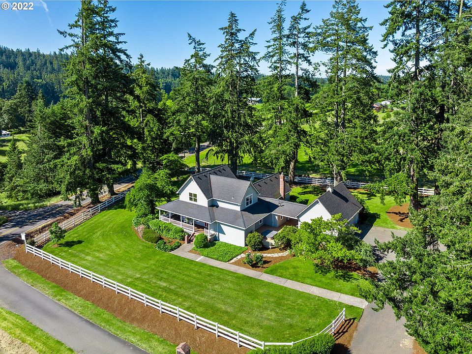 Deer Park, a rebuilt 1900 farmhouse remains the landmark of a historic farm located in the coveted area of Ladd Hill. Set on over two acres you'll enjoy all the joys living in the country offers. The wrap-around porch with timeless balusters frames this picturesque four-bedroom home with generous layout. Master on main leads to deck w/ spa. Kitchen with designer appliances opens to living room with views of neighboring horse property. Three car garage and huge outbuilding supply ample storage.