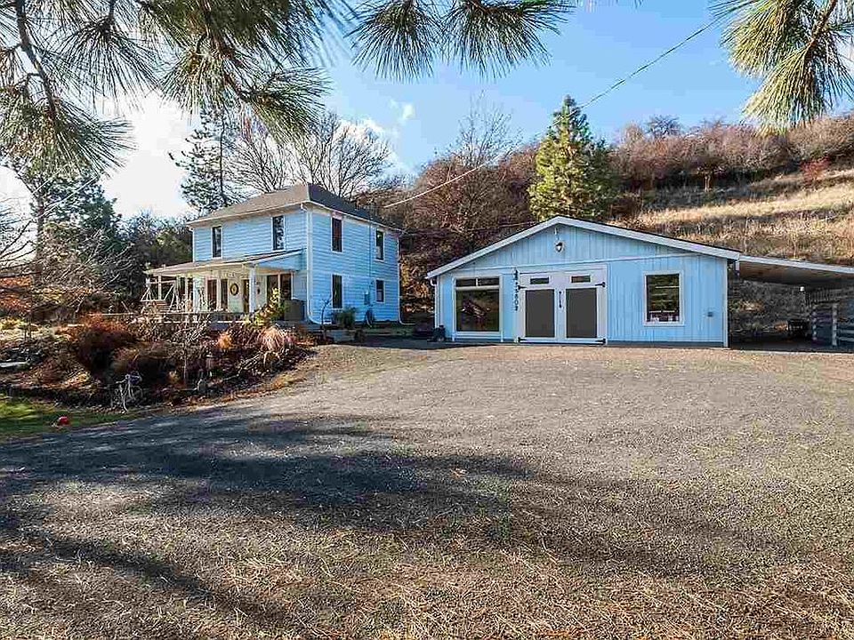 Gorgeous custom-built 3 bed 2 bath home with rural acreage just 20 minutes to WSU. (NOTE: Home sits 1/4 mile South of Colfax on HWY 195, GPS location is incorrect.)Well-designed 1905 modern farmhouse with open-plan kitchen, living and dining room. Bespoke home interior includes hand-plastered walls, high ceilings, double-hung Anderson windows with walnut trim, clawfoot soaking tub, new tile flooring and surround, unique lighting/fans, brand new roof and water heater, newer stainless appliances and pedestal washer/dryer combo, Mohawk flooring, molding, freshly painted inside and out, unusually spacious storage to include an unfinished attic with high ceilings. Great outdoor living with generous porch, wood burning fireplace, stone waterfall with pond, stone staircase and walls, gardens including fruit and nut trees, berries, flowers and herbs. Four acres of property include flat acreage, hillside orchards, and wilderness areas. Huge, 30 x 25 three car garage/workshop is fully insulated and heated, has newer windows and a brand new roof, custom barn doors, partially vaulted ceiling, ceiling fan, carport and 3 attic storage spaces. Neat mix of modern, farmhouse, and industrial make this home a truly unique work of art!!