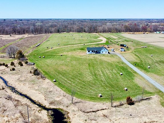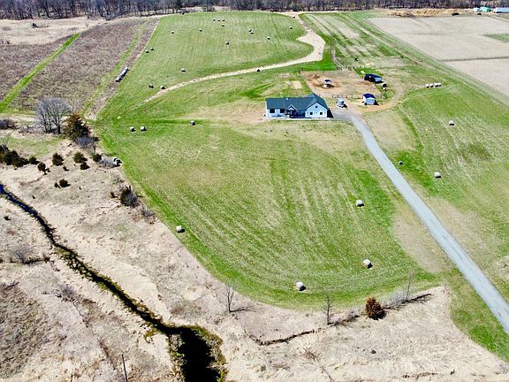 2021 Built walkout ramberler on 20 acres north of Lindstrom! 3BR/3BA all on main level with all living facilities, including large primary bedroom suite, office/3rd bedroom, laundry, bright and open kitchen/dining/living area with scenic country views. Lower level walkout is unfinished and a blank canvas for the next owner to complete. Nicely landscaped yard with boulder retaining wall, west facing patio, and covered front porch for enjoying your morning coffee! 12x16 Storage shed for supplies, solar electric fencing, automatic waterer, pastures are set for rotational grazing, and a 12x24 dual run-in shed for horses, please bring them along!!