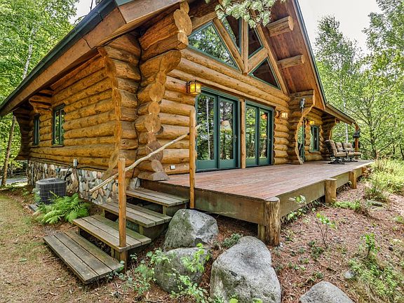 Singing, Peace Like A River, 1st words from my mouth when I experienced this incredible property! It was like transcending to another world. Wow, a Scandinavian full log hand scribed home on 8 beautiful wooded acres & over a 1,000’ of frtg on the soothing Tomahawk River. Seller has captured many spectacular moments from bathing Eagles, splashing Muskie, Swooning Swans, Geese, baby Deer & more. Nestled between Tomahawk, Rhinelander & Minocqua! Location is close to all the amenities but engulfed with serenity and privacy. Step to the wrap around deck & breathe in nature. Enter to find guest ba, main level bdrm & kitchen offering a panorama view of creation. The living area will take your breath away with its gorgeous ceiling high stone woodburning fireplace & windows. The loft offers a private mstr ste & ½ ba. Seller in LL created a complete Mom in Law qrtrs with full Ki, laundry, full Ba & living area. LL also has an incredible utility/craft room. Garage offers complete upper level!