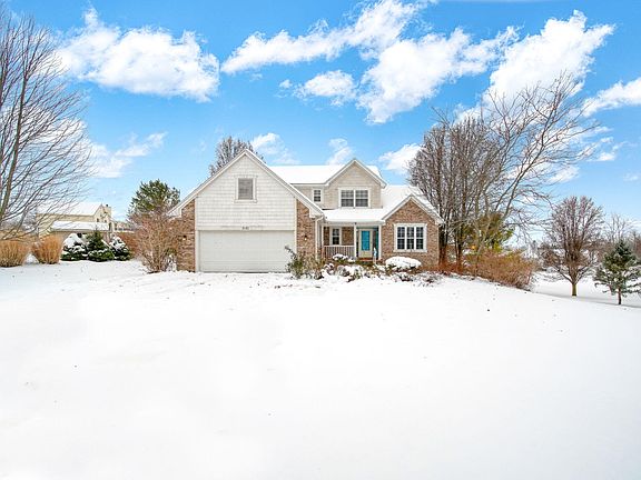 Step inside this warm and welcoming home where comfort, charm, and thoughtful updates come together beautifully. Designed with an open floor plan, 3 bedrooms, and a dedicated office (possible 4th bedroom). The bright kitchen/dining offers granite countertops and new flooring (2025), opening to a great room with vaulted ceilings and custom Cancun river rock gas fireplace. Enjoy remote-control blinds throughout and convenient first-floor laundry. The main-floor primary suite includes a large walk in closet and walk-in soaker tub. Upstairs, you'll find two additional bedrooms and a full bath. Major updates include a new roof and A/C in 2024, providing peace of mind. A full basement (plumbed for a 4th bath) offers tons of storage and room to grow. Outside, a spacious deck overlooks the private, well landscaped half-acre lot. An attached 2-car garage completes this home. It all adds up to the perfect blend of warmth, updates, and space; ready to welcome its next owners.