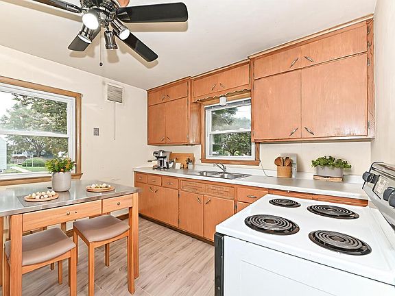 With a little paint and flooring here is your chance to make this home shine! Large, sunny living room. Eat in kitchen with stove and refrigerator included. 2 great sized bedrooms and full bath complete the main level. Upstairs is an office, huge 3rd bedroom and plenty of storage. Lower level is just waiting for your rec room ideas. All block, oversized (24X16) garage with 10 foot over head doors is a bonus. Large lot and close to Wilson Park. Some photos virtually staged. Make your appointment today!