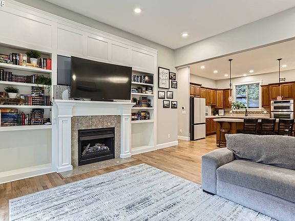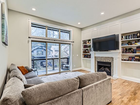 Sophisticated living meets rustic charm in this beautiful chalet-style home. Great room floor plan includes an eat-in kitchen, gas fireplace surrounded by built-in cabinetry, and leads out to a balcony overlooking the quiet, dead-end street. Plenty of space, with adaptable rooms that can easily be used as living area or bedrooms. Large upstairs bonus area, primary suite with high ceilings and spacious bathroom. Massive garage (approx. 1000 sq ft) and a tranquil backyard with mature fir trees, with a park and playground just up the street.