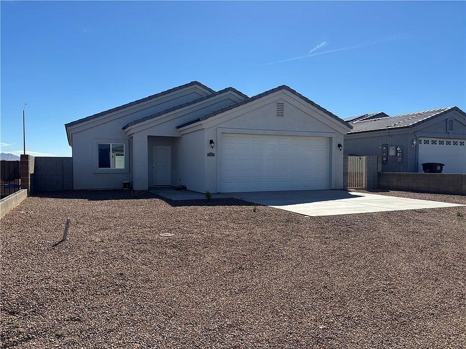 House is fully completed and move-in ready. 1330 square foot new 2x6 construction home with synthetic stucco and tile roof with double-pane windows. The front yard is fully landscaped. The home is set up with electric heating system, range, water-heater and electric cooling system that will keep you comfortable all year around. The 3 bedrooms 2 bathrooms 2 car garage is perfect in the inside, the kitchen has granite counter tops and stainless-steel stove, microwave and dishwasher. The open floor plan is perfect for entertaining guests. The home is accented with nickel fixtures in both lighting and plumbing. The carpet in all the bedrooms make for cozy feel but tile is placed through the kitchen, dining room, hallways and bathroom for a more elegant look, walk- in shower in master bathroom, walk-in closet in master bedroom. 2 year Builder Warranty.