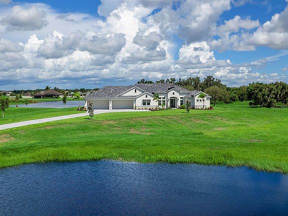 Loaded with over $800,000 in upgrades and extra options. Welcome to 3582 Recurve Circle, where luxury living reaches new heights in Hampton Lakes. This newly constructed estate epitomizes sophistication on a spacious 12-acre lot in a secure, gated community. An oversized, six-car garage offers ample space and convenience for the car enthusiast or collector. Enjoy unparalleled elegance and serenity, highlighted by stunning lake vistas and assurance of no flood insurance required. As you approach this magnificent home via the grand paver driveway, you'll immediately sense the ambiance of opulence and calm. The inviting open foyer, illuminated by natural light, features soaring ceilings and tall windows that beautifully frame the picturesque outdoors. Elegance and comfort can be found in every detail. The heart of this home is the expansive living room, showcasing a striking stone-accented electric fireplace and a wet bar with custom cabinetry, ideal for entertaining and relaxation. Expansive sliders open to panoramic lake vistas, leading to a sprawling outdoor lanai designed for effortless gatherings. This outdoor oasis features a panoramic screen, a self-cleaning saltwater heated pool, a spa, and a covered area ideal for entertaining and unwinding. The den/office, with double French doors, provides a secluded space for work or calls, conveniently near the owner’s suite. It’s a culinary masterpiece. The gourmet kitchen is a chef’s dream, equipped with thick Cambria quartz countertops, an induction cooktop, under-counter microwave and a warming drawer. An adjoining butler’s pantry/wet bar with seating and a beverage cooler enhances the space, ideal for grand entertaining and intimate meals. The open-concept design seamlessly connects the kitchen to the spacious family room, fostering a sense of togetherness. Luxurious retreats excite. The primary suite serves as a luxurious sanctuary, featuring a spa-like bath with a jetted tub, large shower and dual vanities. The oversized walk-in closet, 15-by-18 feet, is thoughtfully designed with custom built-ins and cabinetry. A morning bar with a beverage cooler and a picture window adds convenience and elegance. Each of the three additional guest en suites are generously sized, featuring walk-in closets and private baths for enhanced privacy and comfort. Modern sophistication is found throughout. The home’s modern design is highlighted by sleek lines, tasteful color palettes and large-format porcelain tile throughout, creating a cohesive and stylish ambiance. Additional premium features include impact windows and doors, high-volume tray ceilings with concealed accent lighting and intricate detailing, all contributing to the home’s custom features and comfortable atmosphere. Just five miles from vibrant Waterside Place and Lakewood Ranch, with easy access to downtown Sarasota, this luxurious estate embodies a seamless blend of modern elegance and serene comfort. Experience refined private country living at its finest at 3582 Recurve Circle. Pictures were taken when house was staged. The house is currently not staged and vacant of furniture and decor.