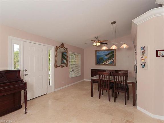 The search for your new home stops now! This gorgeous 3 bedroom / 2 bath home was made to bring you only the best of what Naples has to offer. This property allows you to enjoy the privacy of your own acreages of lush landscaping with no HOA fees, & still be close enough to shopping plazas, fine-dining restaurants, beaches, & schools. This house is in immaculate condition & has been been upgraded with a 2017 interior design, such as Travertine tile throughout the living room, family room, laundry room, both bathrooms, shower walls, front entrance & screened-in lania. The kitchen & bathroom cabinets have been refinished to dark mahogany color & accented with modern stainless steel handles. The kitchen is equipped with Samsung appliances, brand new laminate wood flooring, & elegant granite counter tops. The interior & exterior of the house has been completely repainted, including the garage. EXTRA FEATURES: New house gutters, new sprinkler system, & new pavers. Custom-made fireplace with antique historic pavers from many locations in United States & Mexico, 220 AC Panel Pre-wired for Sauna & Hot tub, & a custom-made wall of exposed brick in the living room.