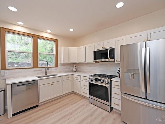 This beautifully updated home in Mount Lookout is a rare find, just 2 minutes from Mount Lookout Square. Recently renovated in 2024, it features a completely updated kitchen with new LG stainless steel appliances, granite countertops, soft-close cabinets, tile backsplash, and a large peninsula, perfect for entertaining! The bathroom has been fully remodeled with modern finishes, a new vanity, tub/shower, a built-in linen closet, and LVP flooring. Additional updates include new LVP flooring in the kitchen, new carpet on the stairs, fresh paint throughout, a new furnace, new HVAC, and a tankless water heater (2023). Exterior improvements include a brand-new roof, new gutters with gutter guards, a freshly painted deck, and updated landscaping. Enjoy a private backyard, detached garage, and spacious driveway, all in one of Cincinnati's most desirable neighborhoods. Sellers are offering a $5,000 seller credit to assist buyers with closing costs!