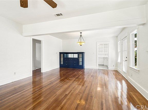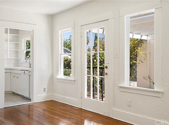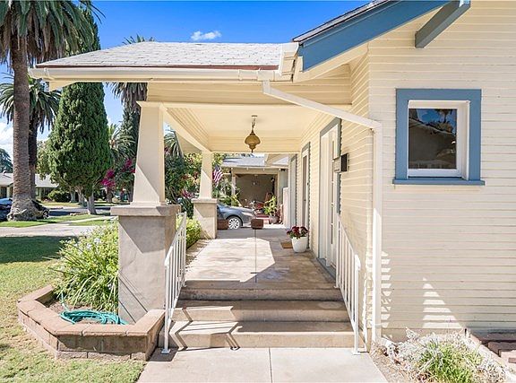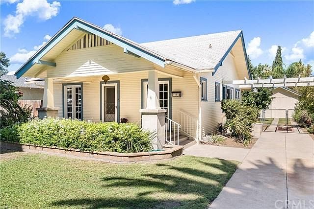 Adorable Wood Streets cottage with breezy front porch and old-world charm! You're welcomed by recently refinished gleaming original hardwood floors throughout, a gas fireplace, newer central air/heat, indoor laundry, and adorable kitchen with open shelving, tile counters, dishwasher, pantry, 4-yr-old stove, and updated plumbing. The bathroom boasts dual sinks, separate shower, and a claw foot tub! Open concept living room, and dining room with built-in hutch, and a charming side French door to the outside. The backyard has two sections, one with grass and sprinklers, and the far back section mostly dirt for gardening, or extra parking off the alley for vintage cars or RV. The over-sized one-car garage is ideal for a smaller car, or just storage. This home is affordable and adorable! Walking distance to RCC, shopping, and a short drive to lovely and historic downtown Riverside. What more could you ask for?!