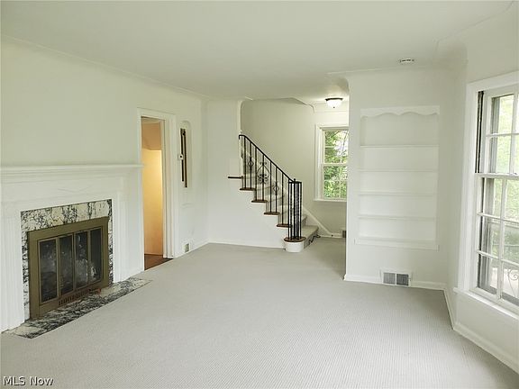 - Description: large bay window. beautiful fireplace. great entry door.,Flooring: Carpet,Wood