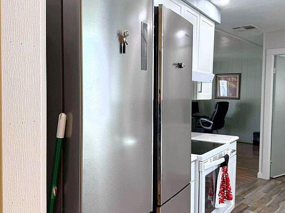Charming 2-bedroom, 2-bathroom updated doublewide home in a welcoming 55+ community! This 1972-built, 1,050 sq. ft. home sits on a 3,939 sq. ft. lot and offers a comfortable, well-maintained layout. Enjoy newer sun shades (front windows) and front windows, brand-new slider “farm doors,” and fresh laminate “tile” flooring in the primary bath. The home includes an efficient electric range, refrigerator, microwave, washer & a newer dryer. Relax under the covered patio or keep busy in your detached workshop with window A/C, shower & utility sink. The community HOA offers reasonable monthly fees which covers water, trash, irrigation, and access to a clubhouse pool. Outside, a lime tree adds a touch of greenery to the yard. Perfect blend of convenience, comfort, and community amenities!