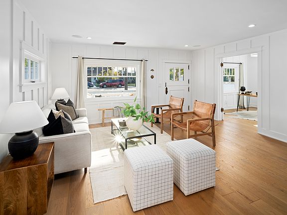 This home features a bright, airy open-plan kitchen/living area, with a separate dining room that could be used as an office or bedroom. Hardwood floors throughout the common spaces, a primary bedroom with ensuite bathroom, and two other bedrooms plus a full bath can be found on the ground floor. The second story is a 405 sq ft finished loft/attic space that could be used as a family room, play/hobby area, or office space.
