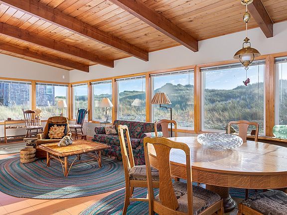 OCEANFRONT!!!Charming mid-century modern bungalow with wood burning fireplace. Nestled behind the rolling dunes for added privacy and wind protection. The Nestucca River with World Class fishing is just steps away. Adjacent oceanfront lot also available.