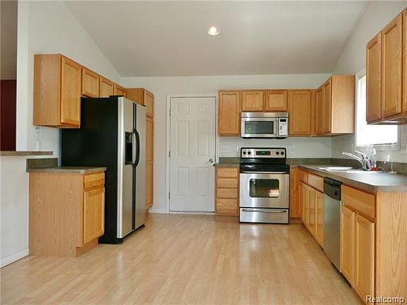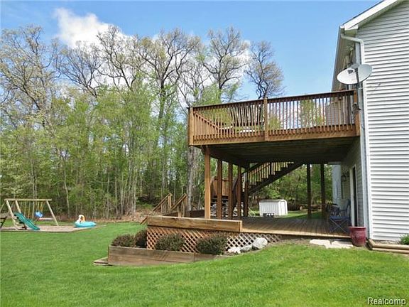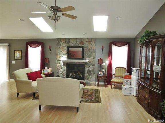 Lovely to look at, yet even better to live in! Open floor plan with skylights & vaulted ceilings in kitchen & great room. Door wall in breakfast room leading to spacious tiered deck overlooking 3 acre park like setting with stocked pond backing to woods. Great room has gorgeous custom fieldstone gas fireplace. Fabulous finished walkout basement for extra living space and entertaining w/beautiful bar & fridge, 4th bedroom, & half bath. Move in condition- start unpacking!