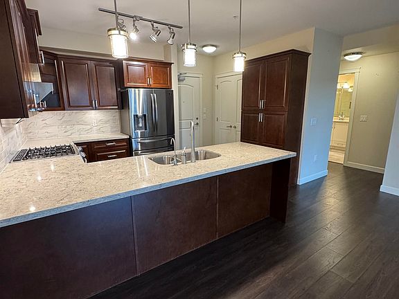 Spacious open concept two bed, two bath PLUS DEN condo with AC at Forest Ridge! With high-quality kitchen cabinets, counter tops & laminate flooring throughout. Bedrooms located on opposite sides of the unit, each with it's own full bathroom. The Primary bedroom has mountain views, plus en-suite w/heated floors and walk-in closet. The large den has a full closet, allowing for multiple uses. Open the patio doors to connect the 280 sqft Solarium and living room to create an amazing space to entertain friends and family! TWO side by side parking, connecting with TWO personal large storage rooms with electrical outlets. Natural gas hookup on the patio for BBQ Amenities include a gym, lounge, and more. Tenants responsible for utilities. Tenant insurance required. Small pet negotiable.