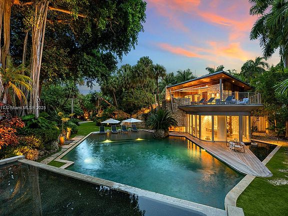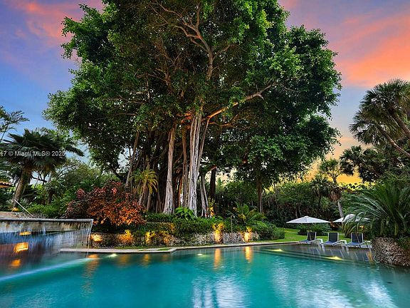 Banyan Ridge Estate is a rare architectural masterpiece where nature, architecture, and luxury converge. Set on 4.5 acres in the heart of Coconut Grove with 180 feet of direct bay frontage, this gated sanctuary in Hughes Cove/Anchorage reveals panoramic Biscayne Bay views amid cascading waterfalls, koi ponds, and lush tropical gardens by renowned landscape architect Raymond Jungles. Winding paths connect eight distinct residences and structures, each crafted with intention and artistry. Expansive terraces, meditation gardens, and hidden courtyards evoke a world-class resort ambiance, while infinity pools and a private boathouse complete its coastal allure. A timeless, tranquil, and incomparable legacy estate.