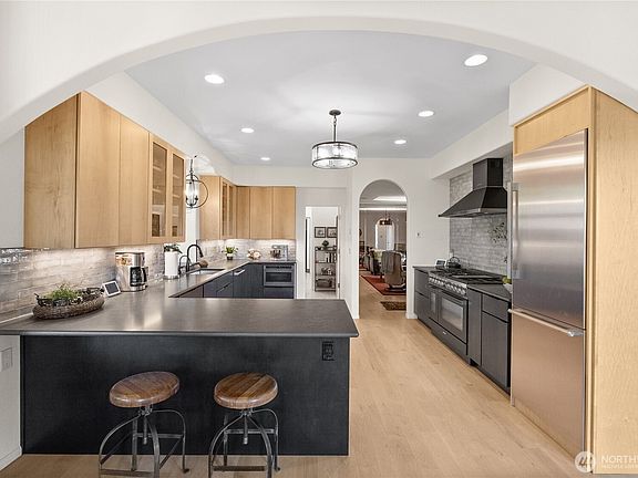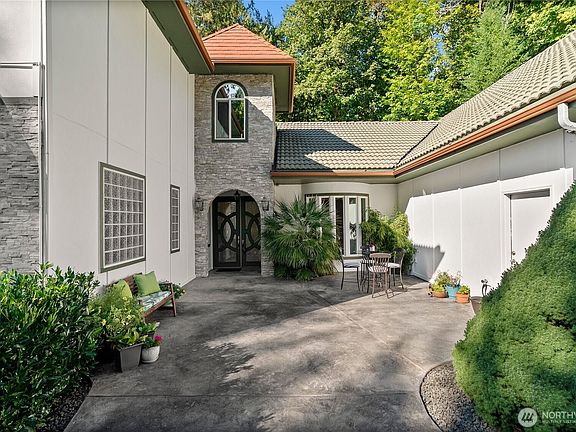 This estate perched above Dyes Inlet w/ captivating mtn views, embodies elegance & architectural excellence. Situated in the gated Reymont community, it offers a seamless blend of sophistication & natural beauty. Relax near the gas hearth, immersed in a serene wooded setting. A chef—ready kitchen features a Smeg stove & Liebherr appliances, elevated by refined touches such as instant hot. A primary suite w/deck spans the upper level, features a sitting room & luxe 5-piece bath. Wrapped in non-combustible cement stucco & concrete tiles, this home is outdoor kitchen & elevator-ready, w/ pet grooming studio, & 1,320 sqft of garage. A 1680 sqft attic w/ private entry is ready for your vision. Features list available—schedule your tour today!