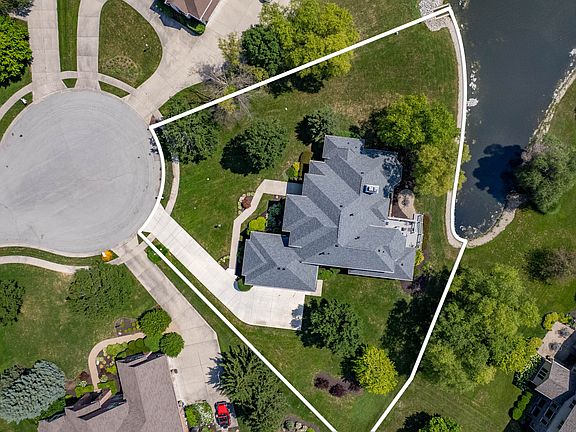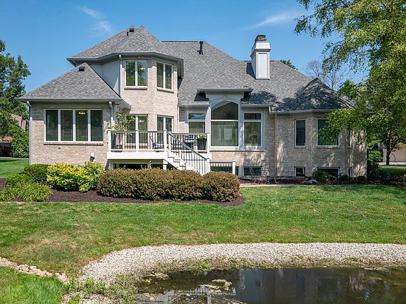 Discover the extraordinary in this magnificent one-owner custom-built home, a true gem spanning over 6,419 square feet, ideally situated in west Carmel's highly sought-after Huntersfield neighborhood. This remarkable 5-bedroom, 4.5-bathroom residence is designed for sophisticated living, featuring the convenience of a Primary Bedroom on the Main floor. Step inside and be captivated by the modern finishes and thoughtful upgrades throughout. The gourmet kitchen is a chef's delight, boasting ample storage, a spacious island, and seamless flow into a bright breakfast room and inviting sunroom. Perfect for entertaining, the main level also offers a formal dining room and a cozy den with elegant built-ins and a fireplace. From the sunroom, step out onto the deck to enjoy serene moments and picturesque pond views. The enormous main-floor Primary Bedroom offers a luxurious retreat, featuring a double-tray ceiling and a spa-like en-suite bathroom with a split vanity and abundant space. The grand two-story Great Room, with its impressive built-in cabinets and fireplace, is bathed in natural light and features an open stairwell leading to the second floor. Upstairs, you'll find three large secondary bedrooms, one currently configured as a functional office, providing flexible living arrangements. The bright, expansive basement features large windows that flood the space with natural light. It boasts a wet bar, ample room for entertainment and a den area perfect for a home theater. A large bedroom, currently utilized as a home gym, and a full bathroom complete this versatile lower level. This home has been meticulously maintained and recently upgraded for modern comfort, including a new roof, new deck stairs, refinished hardwood floors, new carpet in Great Room, refreshed kitchen cabinets, and one HVAC unit replaced in 2022, new driveway 2023. You'll love the convenient location, just minutes from I-465, abundant shopping and dining options along Michigan Road, and easy a