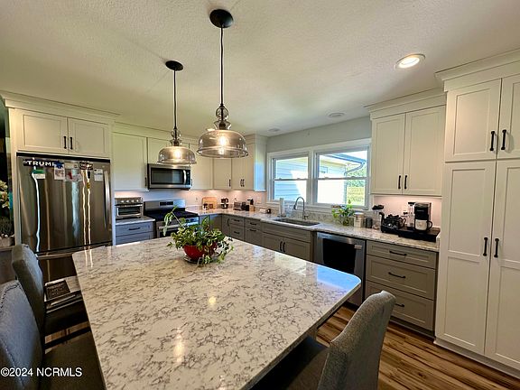 Spacious ranch home offers an open concept floor plan with beautifully updated kitchen, two separate flex rooms (recently renovated w new windows, paint & flooring plus exterior siding), 3 bedrooms, 2 baths, large laundry area, plus a detached workshop/storage building. Enjoy a large yard w room for a garden or horse! New roof is approximately one year old. Seller updated the driveway, side & back decks plus added an oversized carport. Located approximately one hour inland from the NC OBX beaches & 20 minutes South of Edenton.