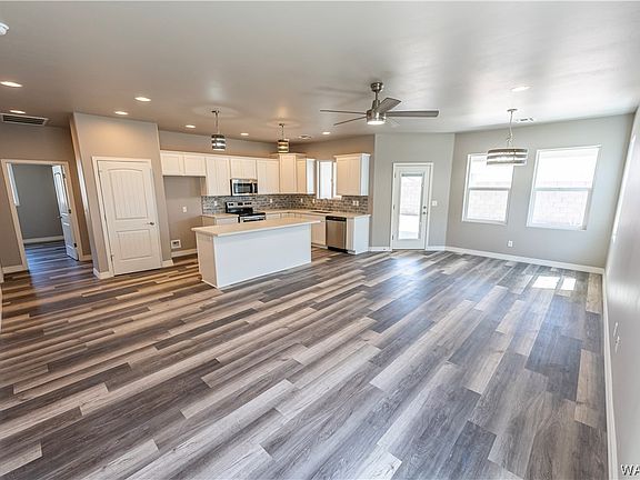 - Breakfast Bar, Ceiling Fan(s), Dining Area, Dual Sinks, Kitchen Island, Primary Suite, Open Floorplan, Pantry, Solid Surface Counters, Walk-In Closet(s)