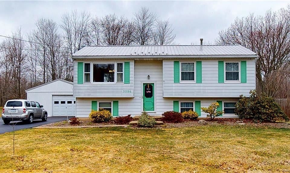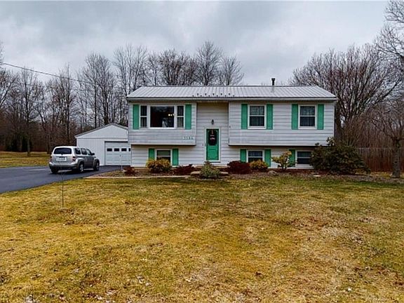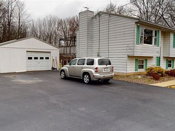 Please check out the VIRTUAL TOUR and the 3D IMAGES of this amazing home! This beautiful, 4 bedroom, 1.5 bath, raised ranch sits in a very scenic area. 2.4 acres of land with a huge, 20x56', 5 car garage on separate breakers, a car buffs dream! Freshly updated with vinyl windows, fresh paint, appliances, floors, metal roof on house & garage. New furnace, central air and hot water tank in 2019. Nice sliding doors off dining room lead to a 16x14' deck and an above ground pool. 2 full bathrooms, family room features a gas fireplace. Giant, circular driveway. Nothing to do but move in!