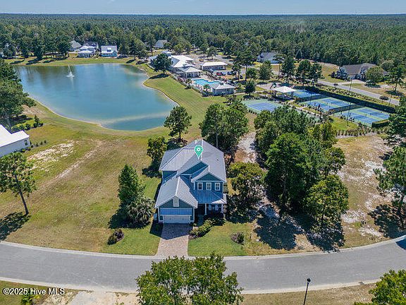 Discover lakefront living at its finest in The Bluffs on the Cape Fear, a natural, woodsy haven offering both elegance and relaxation. From the welcoming paver driveway to the double rear porches with serene lake views, this home blends comfort and beauty. Step inside to soaring 18-foot ceilings filled with natural light, a cozy gas fireplace framed by crisp built-ins, and warm wood flooring throughout. The chef's kitchen is a dream—featuring a large center island, farmhouse apron sink, instant hot water dispenser, gas cooktop with stainless vent hood, and abundant cabinetry—perfect for both entertaining and everyday living. Dine casually in the breakfast nook or host in the formal dining room. This unique home offers two master suites, including a remodeled first-floor retreat with a spa-like bath and oversized shower. A sunroom overlooking the lake invites quiet moments with a good book, while the patio, grilling area, and firepit set the stage for gatherings. Additional highlights include custom plantation shutters, walk-in floored attic storage, and efficient gas pack heat and water heater. Generac whole home generator. Exterior painted in 2025. Enjoy resort-style amenities just a short stroll away—clubhouse, pool, tennis and pickleball courts, a kayak launch on the fully stocked lake, miles of scenic walking trails, and a riverfront boardwalk. Best of all, residents enjoy private access to the community's exclusive Beach Club at Oak Island.