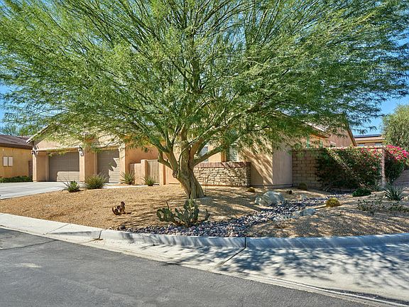 An elegant and highly desirable residence awaits in the peaceful gated community of The Gallery, perfectly situated on a premier corner lot. This central within community location provides enhanced security and a serene environment, free from the distractions of heavy road noise. With a spacious 2,792 square feet, the thoughtfully designed floor plan includes two luxurious master suites, a full size third bedroom, a dining room, and a generous den or office. The spacious great room, complete with a cozy fireplace, is the heart of the home and an ideal space for entertaining. Culinary enthusiasts will appreciate the chef's kitchen, which features granite slab countertops, Maple Shaker cabinets, stainless steel appliances, and under-cabinet lighting. Quality finishes abound throughout, from the 20x20 floor tile to the custom plantation shutters, creating a cohesive and enjoyable living space. The exterior boasts beautifully low maintenance landscaping, allowing more time for enjoying the desert lifestyle. The expansive 13,000+ square-foot corner lot offers ample space for you and your family to enjoy the beauty and tranquility your back yard has to offer, create your personal desert oasis. Additionally, a full three-car garage provides plenty of room for vehicles, storage, and hobbies. This exceptionally clean and move-in-ready home presents an extraordinary opportunity for refined living within a superb, central community location, all complemented by low HOA fees unheard of in such a well maintained community.
