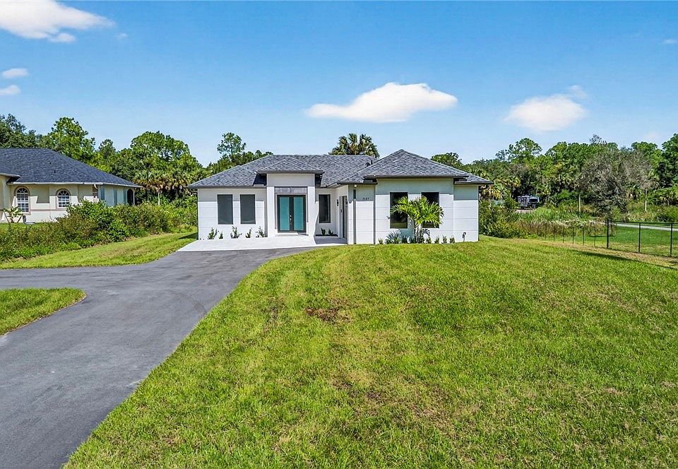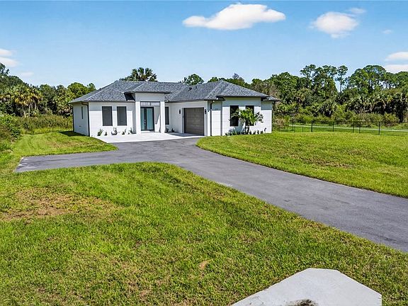 Move-In Ready! Beautiful, 3 bedroom plus den, new construction situated on an oversized 1.59 acre lot! This property offers tons of space for a pool, toys, pets, and it meets county requirements for a guest house! As you enter the house, you will notice the great attention to details and high quality, such as tall french doors, a lovely and airy living room with tile throughout the house, a fresh light colored 42" custom kitchen cabinets with quartz countertop, a waterfall island, beautiful light colored backsplash, soaring high tray ceilings, beautiful crown molding on main living area and master bedroom, 6" baseboards throughout, 8-ft doors, and a beautiful touch of modern with over the counter sinks and waterfall faucets in the bathrooms. Located in the rapidly growing Golden Gate Estates area, just a short driving distance from shops and supermarkets, and great Naples public schools makes this home the perfect investment for your family! **SELLER WILL CONTRIBUTE $10,000 TOWARDS BUYER'S CLOSING COSTS.**MLS pictures are a representation of house of same model, not actual property. CHECK OUT THE VIDEO WALKTHROUGH OF A SIMILAR MODEL HOUSE!