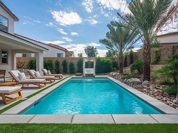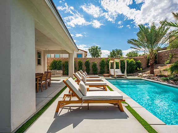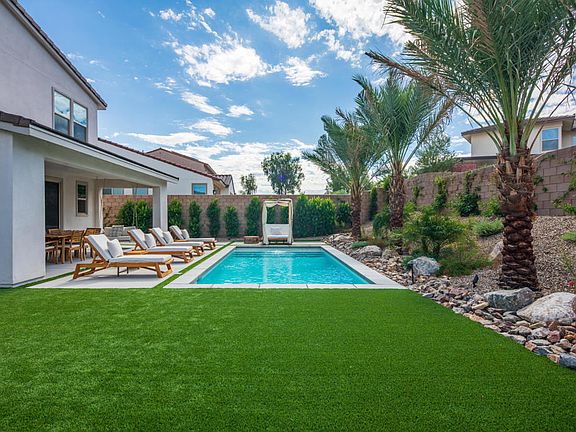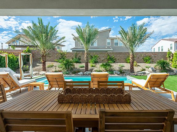 Move right into this stunning upgraded 4-bedroom, 3.5-bath pool home in the new University Park community, completed February 2025. This upgraded residence showcases mountain views, soaring ceilings, and abundant natural light throughout. The open-concept great room seamlessly connects the kitchen, dining, and living areas--perfect for entertaining. The gourmet kitchen features double ovens, a 5-burner cooktop, premium countertops, designer backsplash, and a spacious pantry.Enjoy true indoor-outdoor living with a private central courtyard and covered patio overlooking the large pool, mature landscaping, and custom lighting.Thoughtful layout includes one bedroom and 1.5 baths downstairs, plus three bedrooms, two baths, and a loft upstairs. The primary suite offers a walk-in closet, dual vanities, soaking tub, and large walk-in shower.Additional highlights:Upstairs laundry room with ample storage, Owned solar system for energy savings,Roman shades & scratch-resistant vinyl flooring and Upgraded pebble-finish garage floor.Residents enjoy The Grove, University Park's resort-style amenity center with pools, pickleball courts, a fitness center, event lawn, fire pit, and BBQ area.Experience modern luxury and resort-style living in this move-in ready Palm Desert gem!