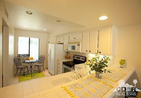 A move-in ready condo in Rancho Mirage for $115,000? Unbelievable, but true. Lowest price in entire community. Mountain View Villas -- in the heart of desirable Rancho Mirage. 2 bedroom, 2 bath condo, beautifully re-furbished Many amenities:7-night FREE PLAY tennis courts, 5 pools/spa, Clubhouse, expansive greenbelts. Gated community. Perfectly situated near tennis courts, pool and clubhouse. Turn-key property: New hardwood floors in dining room and living room New carpet in both bedrooms. All appliances included - refrigerator, dishwasher, microwave, oven/stove, washer/dryer. Living room and master open directly to cozy patio through sliding glass doors, enhancing indoor-outdoor living and entertainment aspect. Ample parking for your visitors. HOA fees among the lowest in the area. Great full-time home or vacation/investment property. This community is not approved for FHA or VA loan, so cash or conventional loan needed. VERY MOTIVATED SELLER. PLEASE BRING ALL OFFERS!