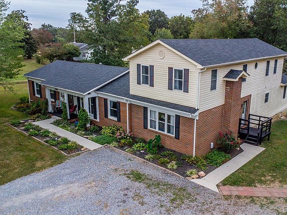 Situated on 2.5 gorgeous acres, this impressive home offers space, style, and versatility. The chef's kitchen features custom cherry cabinets, abundant counter space, built-in wine cooler, stainless appliances including a 5-burner gas range, and adjoining dining area. Entertain in the formal living room with gas-log fireplace and built-ins or relax in the den with recessed lighting, gas-log fireplace, and custom cherry bookcases. A main-level suite includes a large bedroom with walk-in closet, sitting area, and handicap-accessible bath. Two additional bedrooms share a full hall bath with marble floors and cherry cabinetry. Upstairs, the additional private suite provides a walk-in closet, ceramic tile bath, and bonus room ideal for office, nursery, or sitting area. Generous storage throughout plus large detached storage buildings complete this must-see property!