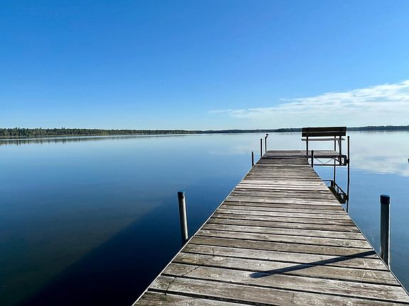 Seasonal Sturgeon Lake cabin with 55' of hard sand bottom lakeshore and spectacular views of the lake! The cabin has 3 bedrooms and 2 baths with a newer water heater, metal roof, and compliant septic system. Great views of the lake from the dining/kitchen area and the screen porch. The back yard has a small deck with a fire ring and fish cleaning shack. There is a single car garage and a small storage shed also. The cabin sells furnished and the dock is included too! No better time then now to start thinking about next summer!