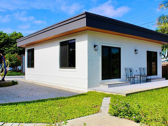 Modern single-family home built 2021. Located near downtown Delray Beach in quiet historical neighborhood near US1/Federal Hwy & Beaches. Large open kitchen and spacious floor plan for a with private washer & dryer. Everything new 2021! Front covered patio & back patio. Hurricane impact windows & doors. High ceilings with recessed lighting! Custom roll-down shades. 24x24 tile wall-to-wall. New appliances, central air-conditioning, instant tankless hot water system, serene lush landscaping with exterior artwork throughout, whole house water filtration system, off-street parking for 2 cars. Quiet serene area. No HOA! Quick Approvals! Water/sewer included in rent. Pet-friendly