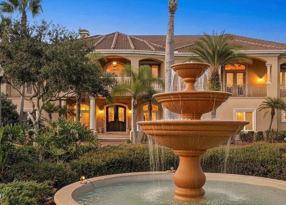 Built by Johnson Group Homes as the builder's personal custom residence, this extraordinary estate is located in the award-winning Venetian Bay golfing community in New Smyrna Beach, where he served as the original developer, and is nestled on over a half-acre lakefront cul-de-sac lot with a tiered fountain centerpiece in the highly sought-after gated enclave of Tuscany Reserve. Offering in excess of 8,000 SF under air and over 11,000 SF total, this fully furnished turnkey mansion features 6 bedrooms, 10 bathrooms (7 full, 3 half), a grand travertine entry with large wood doors, soaring foyer flanked by a formal dining room and music room complete with baby grand, dual staircases, a massive living room with fireplace and balconies above, a wine cellar, wet bar, and chef's kitchen with granite counters, pantry, and GE Monogram stainless appliances. The downstairs primary suite is fit for royalty with its own fireplace, 3-way mirrored dressing room, 20' walk-in closet, garden tub, and separate shower, while 3 additional guest suites are also located on the main level. Step outside to the lanai with outdoor kitchen, pool bath, shower, and a spectacular 150' saltwater pool with beach entry, landscaped island, arched bridge, spillover hot tub, and expansive paver deck overlooking the lake. Upstairs you'll find 2 more bedroom suites, multiple balconies, 2 offices, a flex space, wood-paneled theater room with wet bar and half bath, billiards/game room with sports décor, wet bar, balcony, and half bath, plus a mirrored fitness studio outfitted with top-tier cardio and strength equipment. Every bedroom has its own walk-in closet with built-ins, and laundry rooms are located on each floor. Additional features include a 4-car garage (two tandem spaces) with cabinetry, tile roof, mature landscaping, central vac, whole-house generator, water treatment system, lightning protection, propane tanks, electric hurricane shutters, plantation shutters on interior windows, art niches, and extensive built-ins throughout. Just 15 minutes to the Atlantic Ocean beaches and Intracoastal Waterway, and close to downtown NSB's historic district, shops, restaurants, parks, and entertainment, this home is unlike anything elsebuilt to the highest standards and impossible to replace at this price. ALL INFORMATION IS ASSUMED ACCURATE BUT NOT GUARANTEED. ALL MEASUREMENTS ARE APPROXIMATE. BUYERS AND THEIR AGENTS SHALL VERIFY ANY INFORMATION DEEMED IMPORTANT TO THEM.