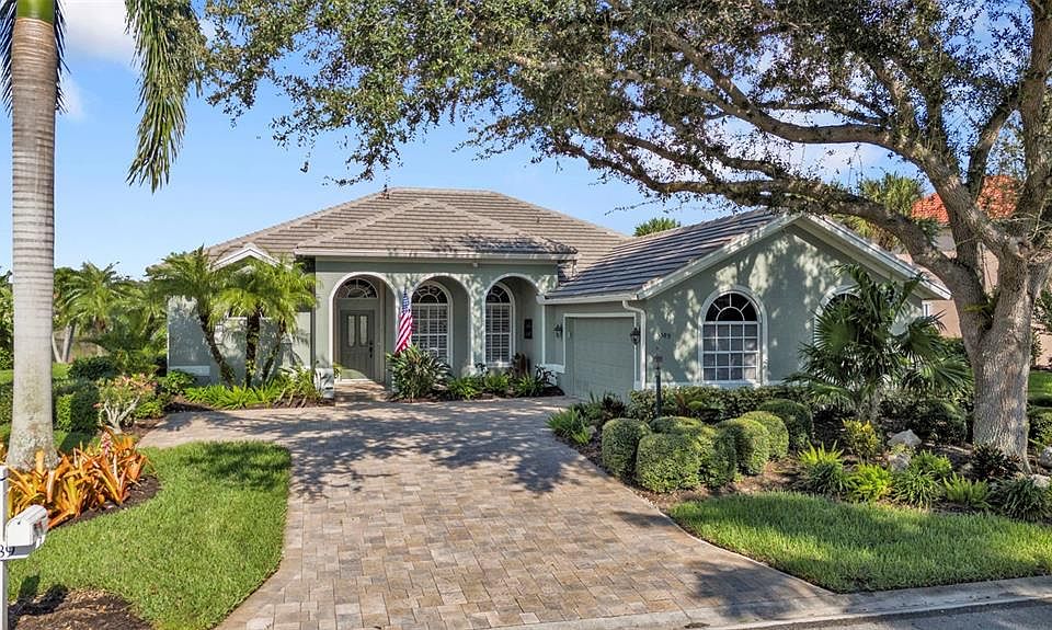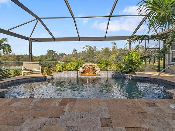 Stunning Water & Preserve Views Await in the Eagle Trace Neighborhood of Riverwood! The striking triple arches at the front entry and paver brick driveway give the home timeless curb appeal. As you enter the living room of this beautiful 4-bedroom, 3-bathroom home, you're immediately greeted by views of the peaceful lake and nature preserve. Vaulted ceilings, arched doorways, plantation shutters, and a blend of engineered hardwood, ceramic tile, and carpeting throughout lend a sophisticated yet comfortable ambiance. The primary suite welcomes you with double doors leading to a spacious retreat with sliding doors to the lanai, a walk-in closet, and an ensuite bathroom with dual sinks and a luxurious tiled Roman shower. Three guest rooms offer flexible living options: one with ensuite access to a full bath that doubles as a powder room, another near a full bath and private access to the pool area, perfectly designed with a door from the kitchen that can be closed to create a private space, and a third that can serve as a den or office. The heart of the home, an open-concept kitchen, boasts Corian countertops, appliances, a large pantry, a moveable center island, a breakfast bar, and a cozy dining nook. Adjacent to the kitchen is the family room, creating a natural flow for entertaining and daily living. The separate dining room is perfect for those more formal gatherings. Sliding glass doors from the living room and kitchen seamlessly extend the indoor living space to the lanai. Outside, a travertine pool deck surrounds the heated saltwater pool, creating a luxurious yet tranquil setting. Tropical landscaping, maintained with an irrigation system, frames the serene environment while a calming water feature flows gently into the pool. This outdoor retreat offers a peaceful sanctuary where you can relax and enjoy the picturesque views and the soothing sounds of nature. Additional features include a new roof installed in 2022, hurricane shutters, a laundry room with a utility sink, a two-car garage, and mature landscaping. As part of the vibrant Riverwood community, residents enjoy amenities such as a par 72 championship golf course, a state-of-the-art fitness center, a resort-style pool, pickleball courts, and Har-Tru tennis courts. Beyond your doorstep, relish easy access to world-class fishing, boating, dining, shopping, and the sandy beaches of the Gulf of Mexico. Conveniently situated between Sarasota and Ft. Myers on Florida's West Coast. Welcome home to comfort, style, and the beauty of Riverwood living! Contact me today to schedule your private showing—this is Florida living at its finest!