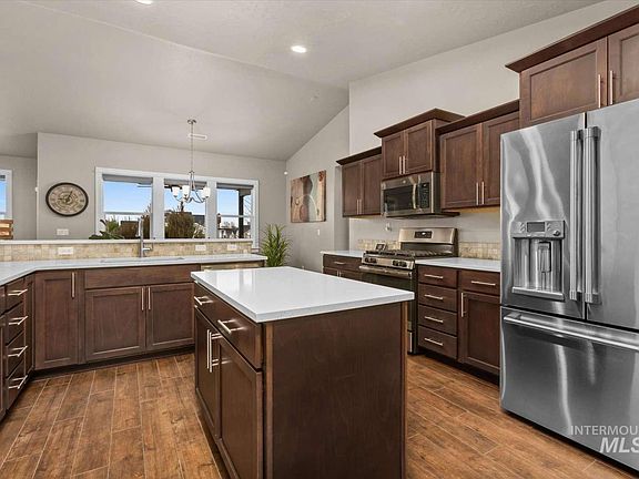 Stunning South Meridian Home in Kentucky Ridge Estates! This beautifully maintained single-level home sits on a .20-acre lot with no back neighbors and boasts an open floor plan. Featuring tile floors throughout the main living areas, it offers 4 bedrooms ( one of the bedrooms can be a den or Office ), 2 full baths, and a landscaped backyard with a water feature. Enjoy outdoor living with a covered patio and custom-built fireplace. The 3-car finished garage includes epoxy floors, 8 ft doors, and an extended depth for larger trucks. The kitchen shines with quartz countertops, soft-close drawers, and a tile backsplash. Additional perks include a whole-home water filter system, automated blinds, Wi-Fi-enabled ceiling fans, and negotiable furniture. A must-see! Back on Market due to previous buyer's personal reasons. Home Inspection had been cleared.