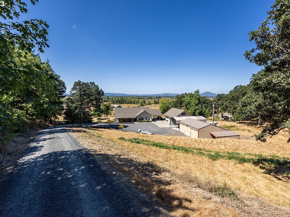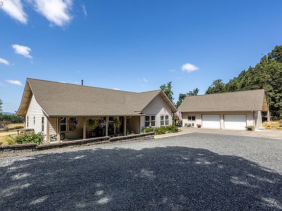 Welcome to Lavender View Farm, a hidden gem on 6.2 acres with a thoughtfully designed custom home positioned perfectly to capture awe inspiring sunsets and privacy from the neighboring properties. This welcoming property features a wrap around porch and established landscaping including an 18 zone underground sprinkler system. The beautiful outdoor entertainment area features pavers with a gazebo and is perfect for watching the sunset year-round or if you prefer you can enjoy a soak in the hot tub as the sun sets. The detached 2 car garage has an unfinished loft area that could be used as storage or finished as a bonus area. The 36x36 shop has a concrete floor that is perfect for storing all your toys and equipment. There is also covered RV or boat parking. Currently there are lavender plants that can be gravity irrigated from a rain catchment system with a 3,000 gallon storage tank which collects from the shop roof. Step inside the home and be greeted by the pastoral views from the open and bright living room. The modern layout seamlessly connects the living, dining, and kitchen areas, providing the perfect backdrop for gatherings of all sizes. The heart of the home, the kitchen, features granite countertops and stainless steel appliances. The dining room features a custom tiled fireplace with a matching table. With four bedrooms, there's room for everyone to have their own space or turn one into an office if desired. This home has been lovingly cared for and is part of the Pleasant Hill school district. This one won't last, schedule your showing today!
