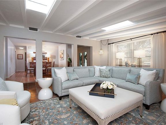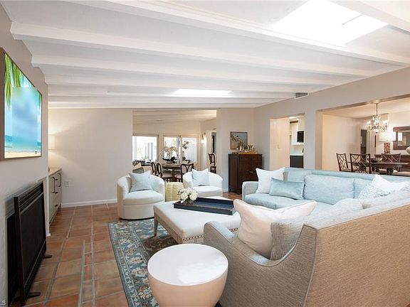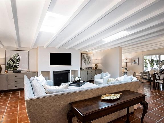 BOOKED Jan.-March 2025: This charming Old Naples house has a perfect combination of great location, serene outdoor spaces, and a spacious, updated interior. The house is 2.5 blocks to the beach, a short bike ride to 5th Ave. S., as a well as the local grocery so leaving the car in the three - car garage is optional. Magnificent outdoor spaces make this home a private oasis. Spend the day by the open- air, resort style pool with lounge chairs, umbrellas, and the sound of palm fronds rustling in the wind. For reading, relaxing, or entertaining friends and family, this property boasts both a lanai and a courtyard. The lanai has a large dining area and sitting area. The courtyard is a unique walled and screened space that provides privacy and another area for entertaining. It combines indoor comforts with fresh air and sunshine or evening stars. The interior has been updated with upscale furnishings throughout an open floor plan. The kitchen was recently renovated with all new white shaker cabinets with quartz countertops in the heart of the home. This three- bedroom, three bath home has a large master suite with cozy seating area walk in closet and large bath with soaking tub and walk in shower.